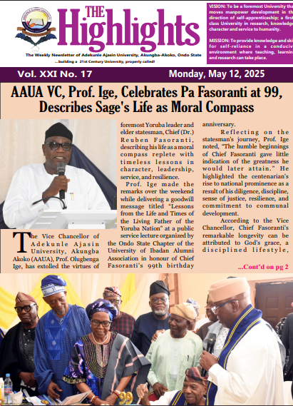 The Vice Chancellor of Adekunle Ajasin University, Akungba-Akoko (AAUA), Prof. Olugbenga Ige, has extolled the virtues of foremost Yoruba leader and elder stateman, Chief (Dr.) Reuben Fasoranti, describing his life as a moral compass replete with timeless lessons in character, leadership, service, and resilience